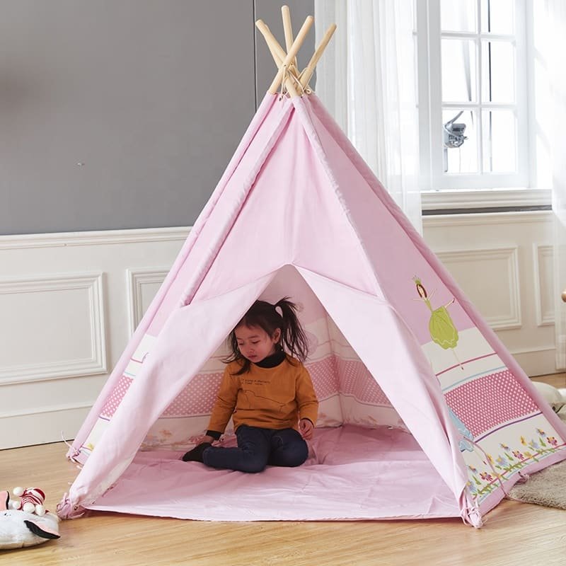 Our Indian teepees for kids are crafted with safety and eco-friendliness in mind. The wooden poles are made from durable New Zealand Pine, sanded smooth for safety and left unpainted to be eco-friendly. The fabric is a cotton-polyester blend that is soft, flame retardant, and mildew resistant, meeting CE Marking and EN71 standards. Our commitment to non-toxic materials ensures a safe and sustainable play space for children.